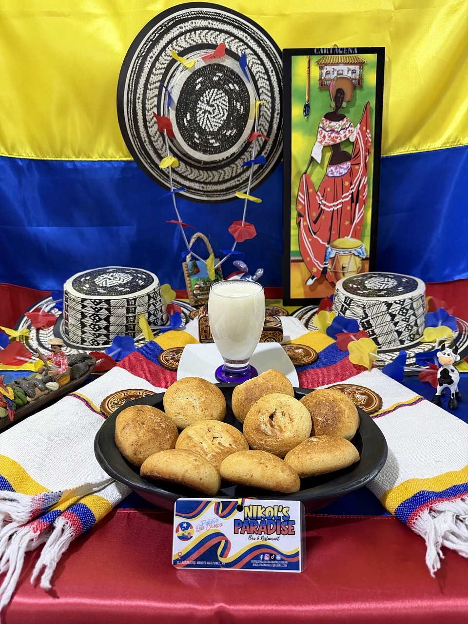 - Avena con pan de bono o pan de queso : bebida láctea tradicional fría acompañada de nuestros típicos panes $7